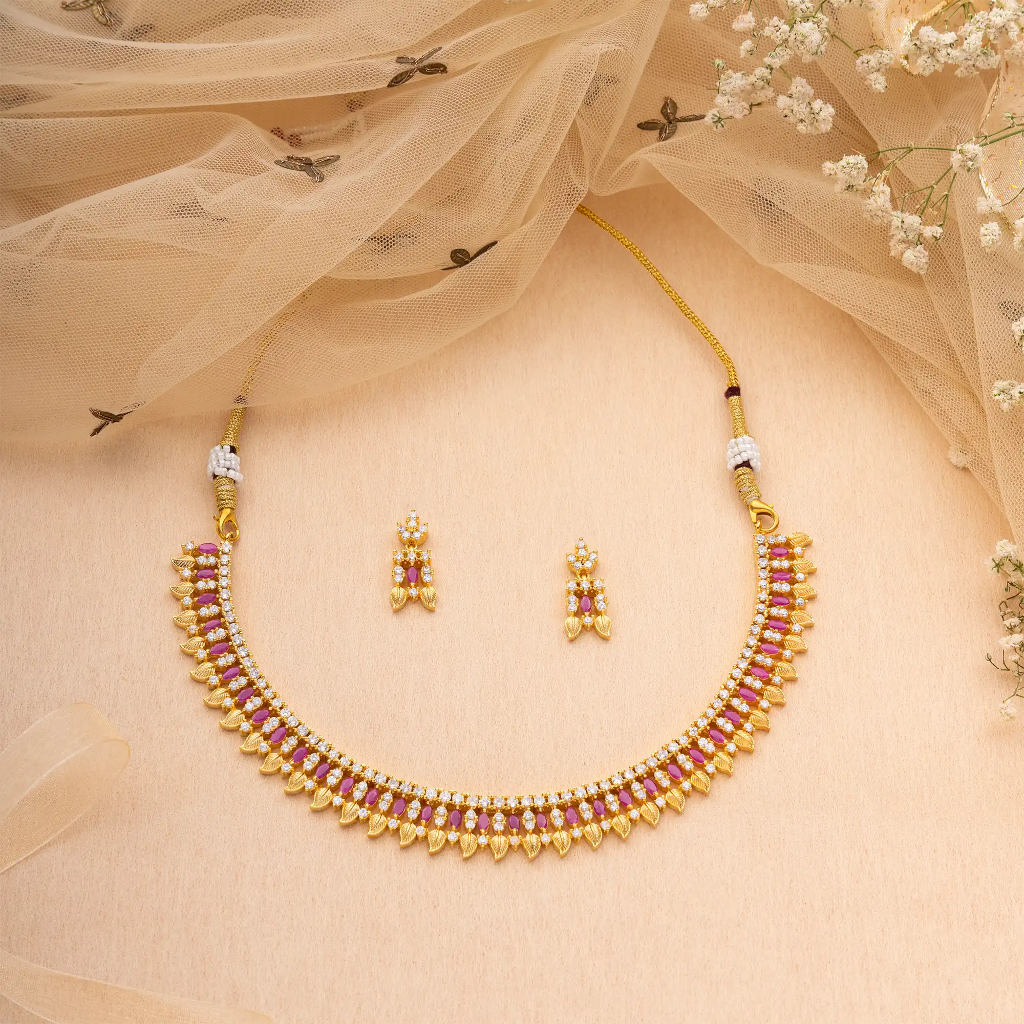 The necklace and earring set from MriduMani is extremely versatile and goes well with every ethnic attire including lehengas, saree and sharara suits. It is a telltale of versatility that knows no bounds because of how it can be styled with almost any kind of outfit. The eye-catching design reflects eccentric workmanship. It will surely amp up your overall ensemble.