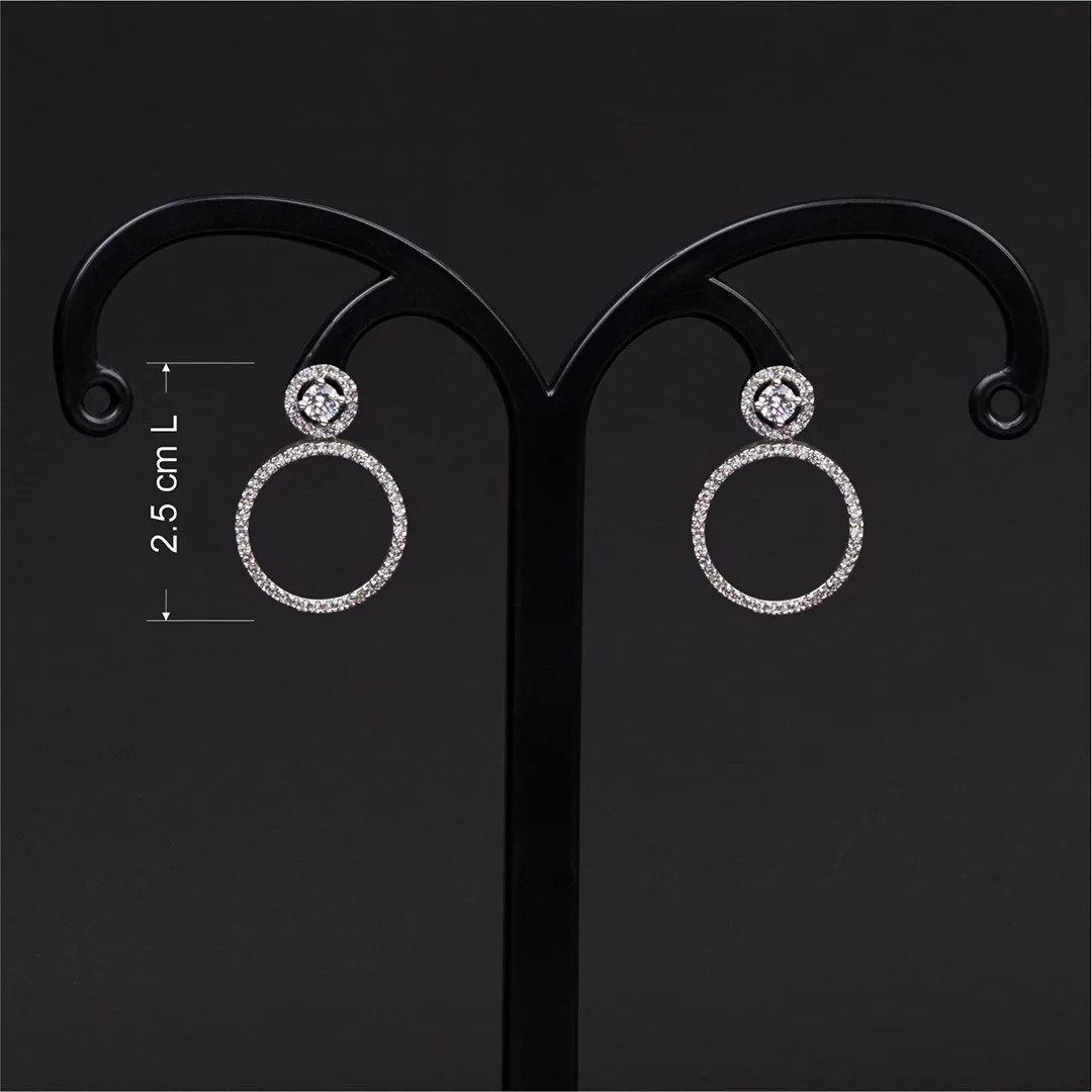 Elevate your elegance with our rhodium plated studs adorned with american diamonds. The exquisite earrings combine the brilliance of american diamonds and white stone, creating a timeless accessory that effortlessly complements any outfit.