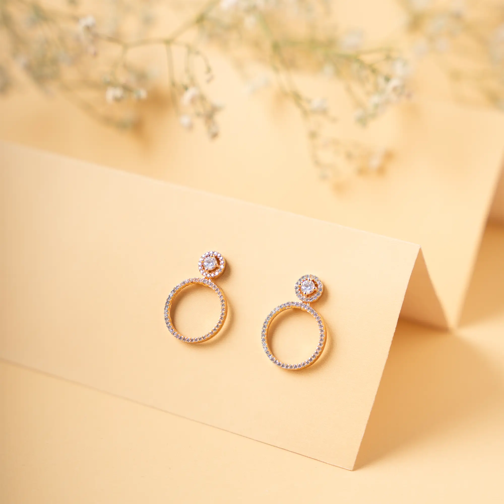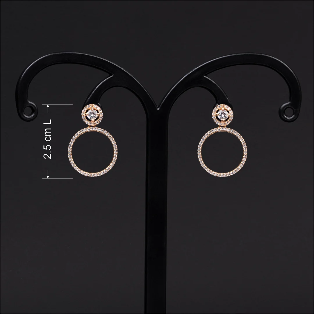 Elevate your elegance with our rose gold plated studs adorned with american diamonds. The exquisite earrings combine the brilliance of american diamonds and white stone, creating a timeless accessory that effortlessly complements any outfit.