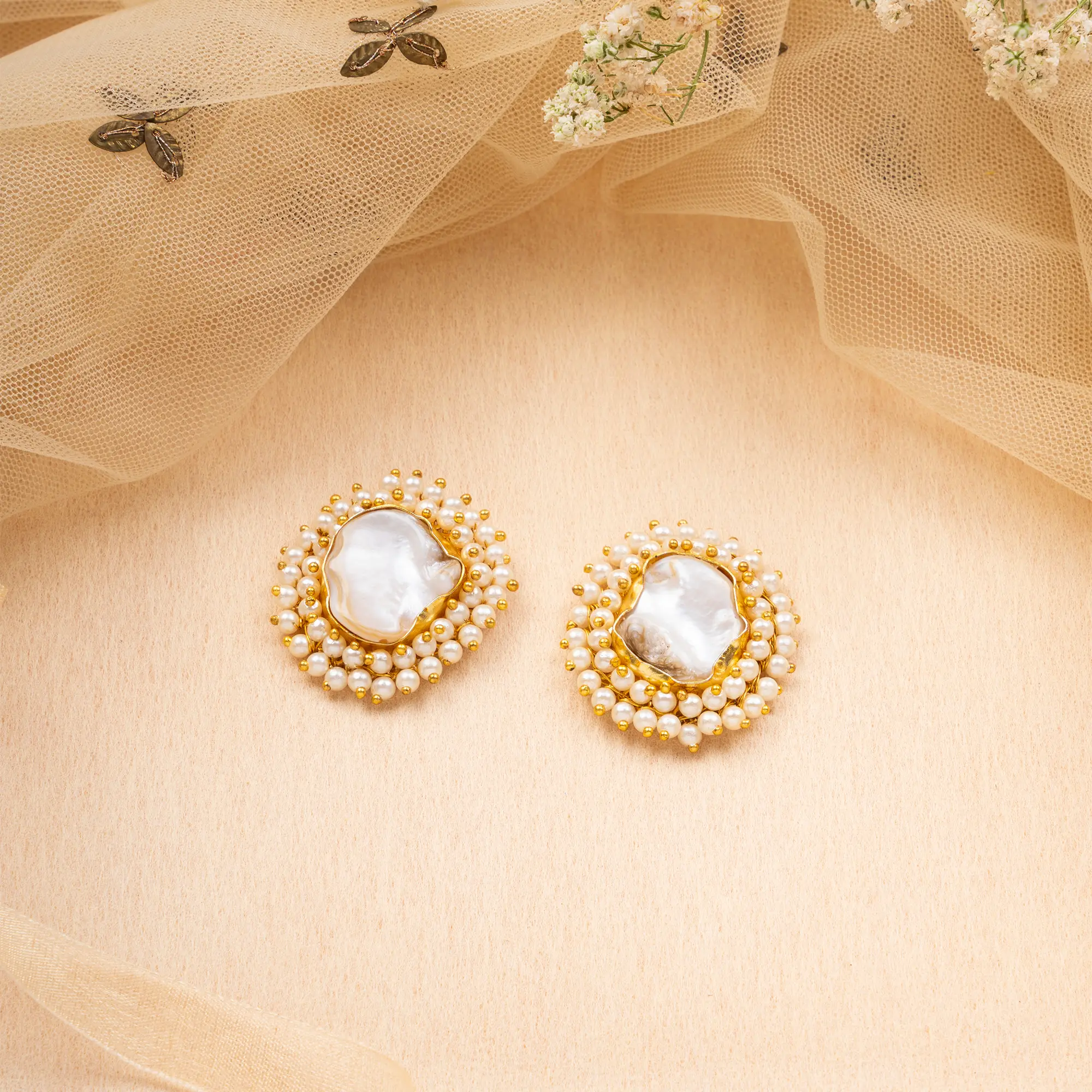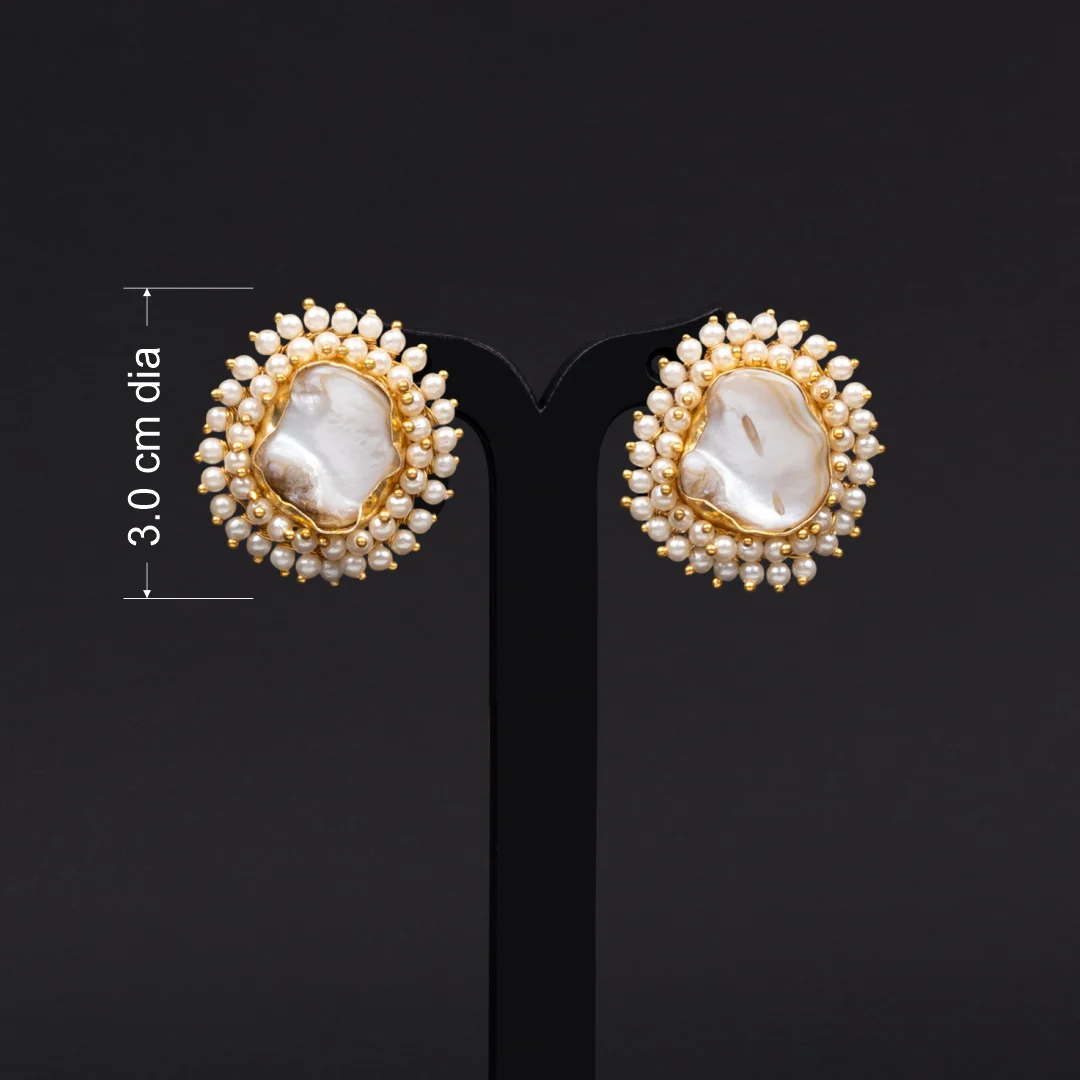 Elevate Your Elegance with our gold plated earrings adorned with pearls. The exquisite earrings combine the brilliance of pearls and mother pearl, creating a timeless accessory that effortlessly complements any outfit.