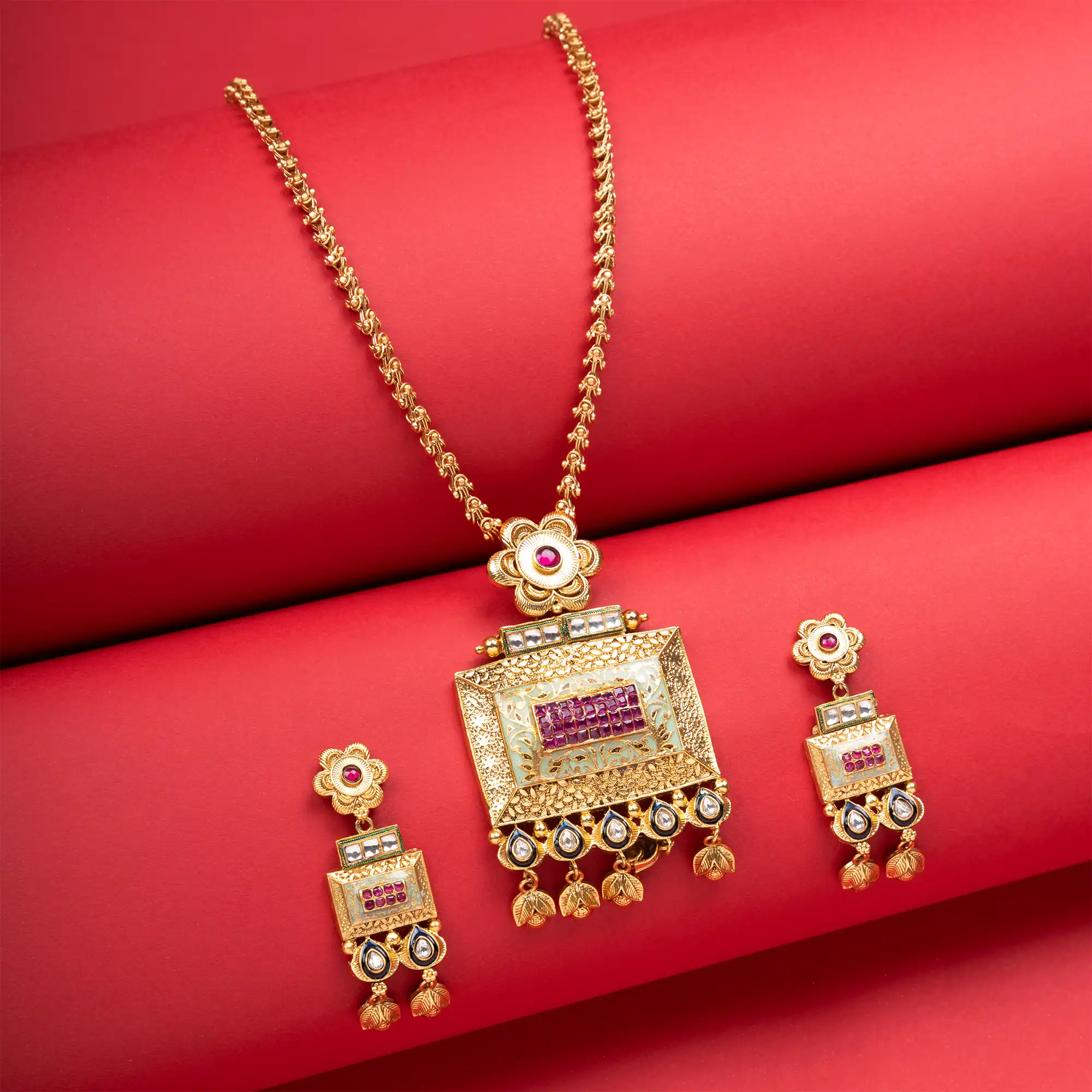 The pendant set from MriduMani is extremely versatile and goes well with every ethnic attire including lehengas, saree and sharara suits. It is a telltale of versatility that knows no bounds because of how it can be styled with almost any kind of outfit.