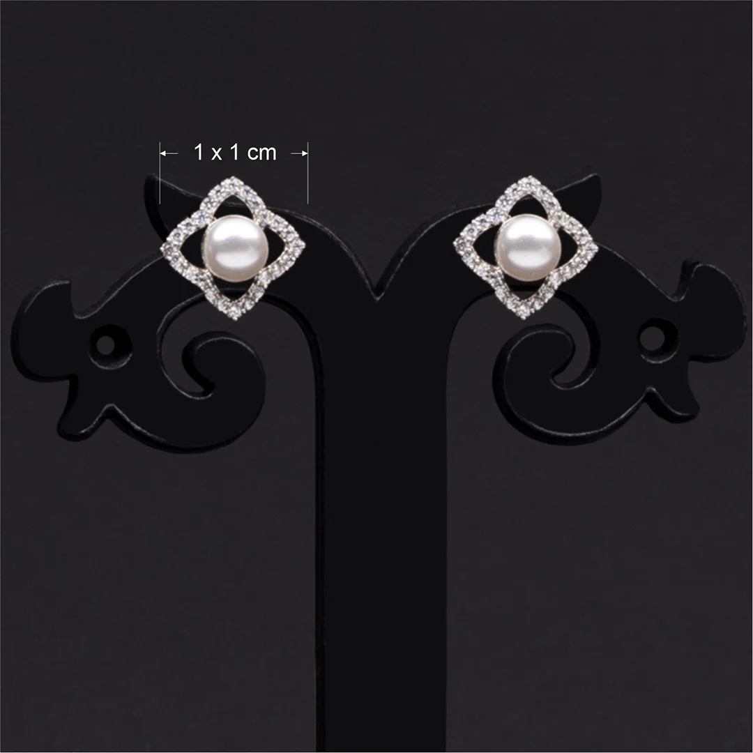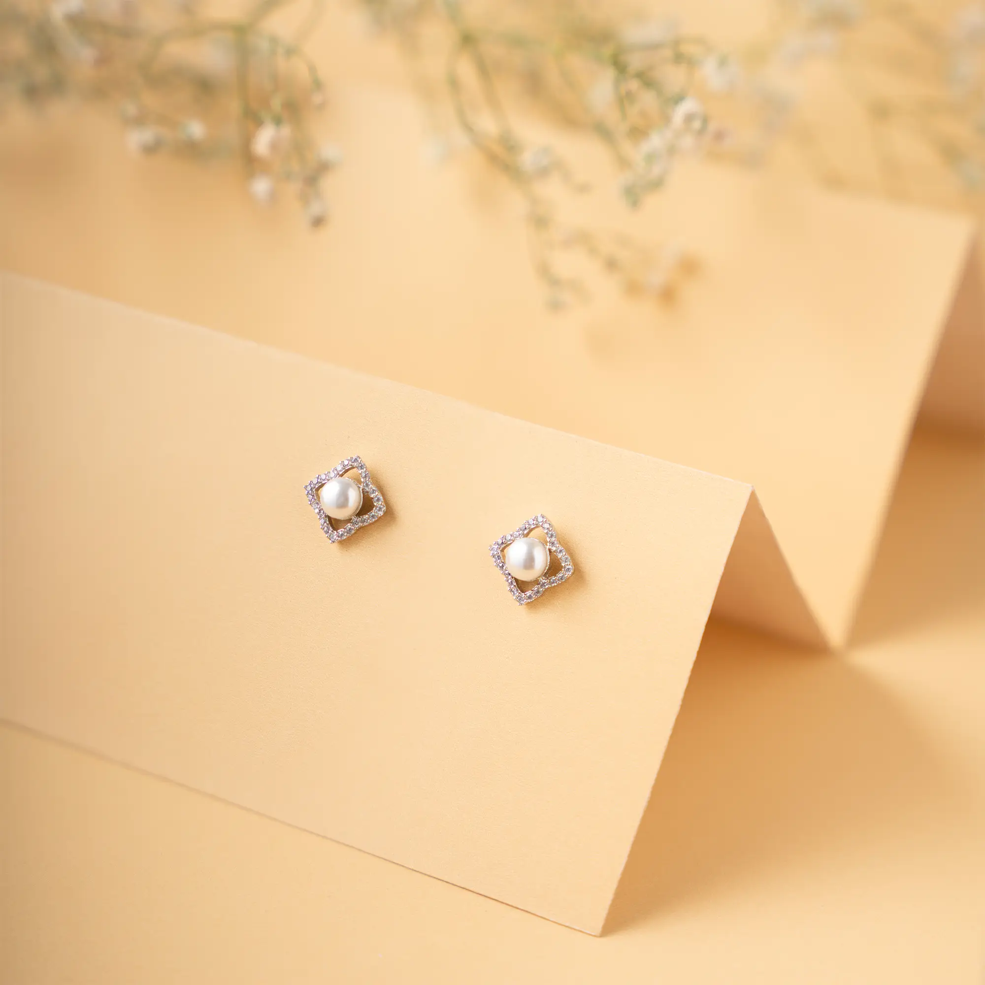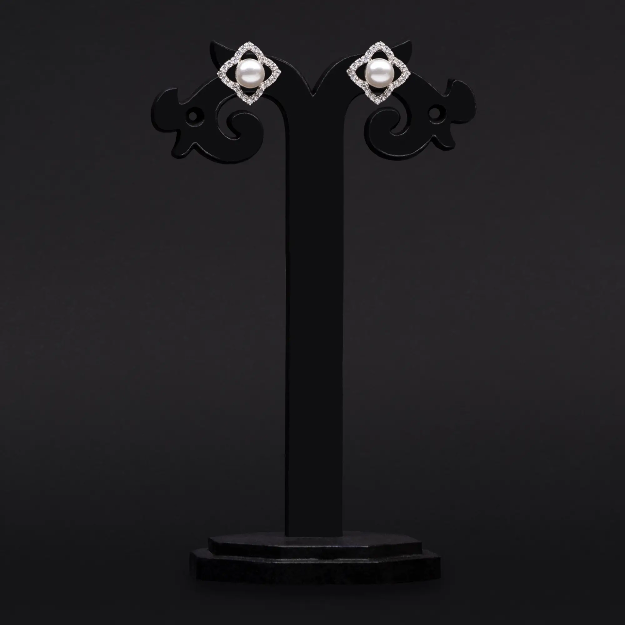 Elevate your elegance with our rhodium plated studs adorned with american diamonds. The exquisite earrings combine the brilliance of american diamonds and pearl, creating a timeless accessory that effortlessly complements any outfit.