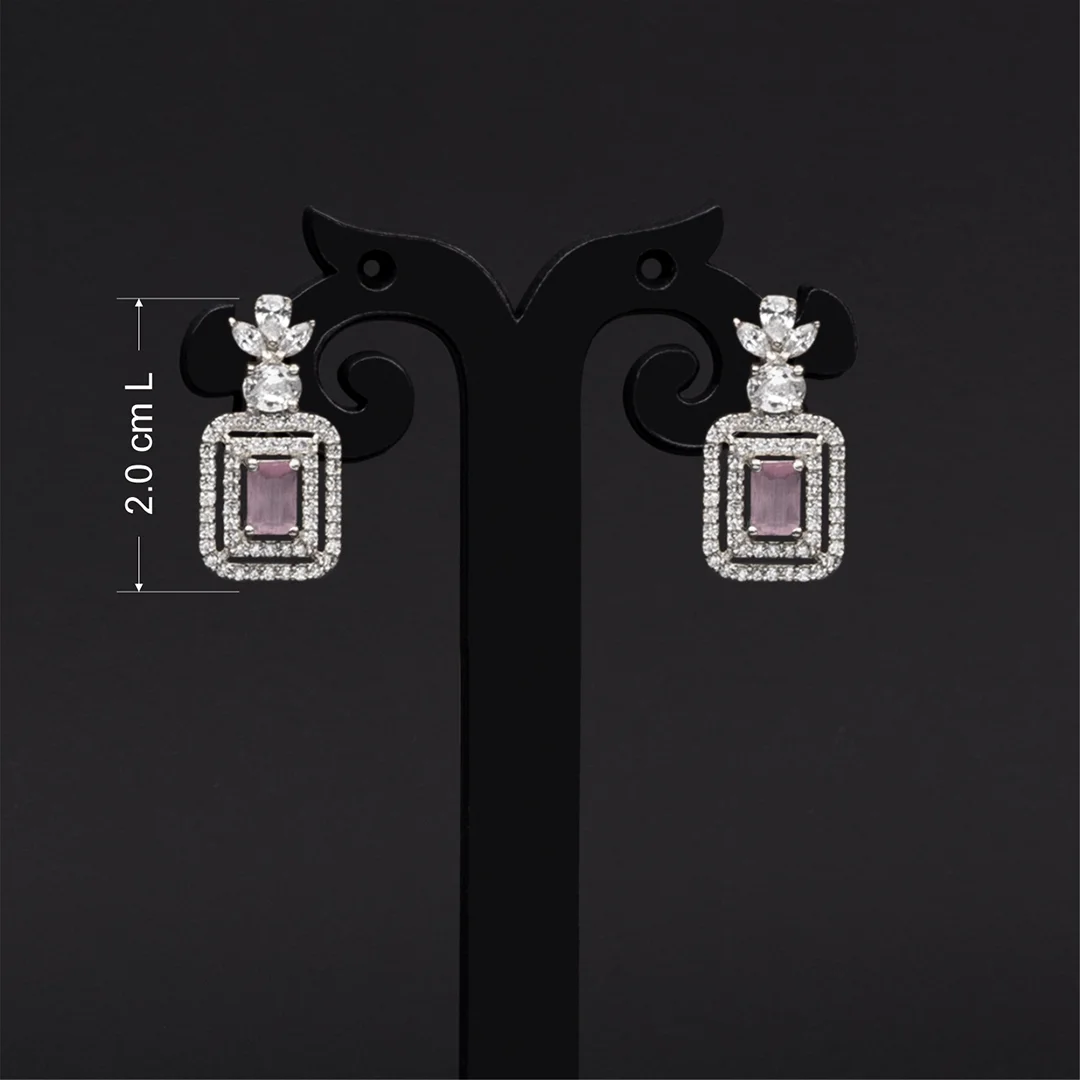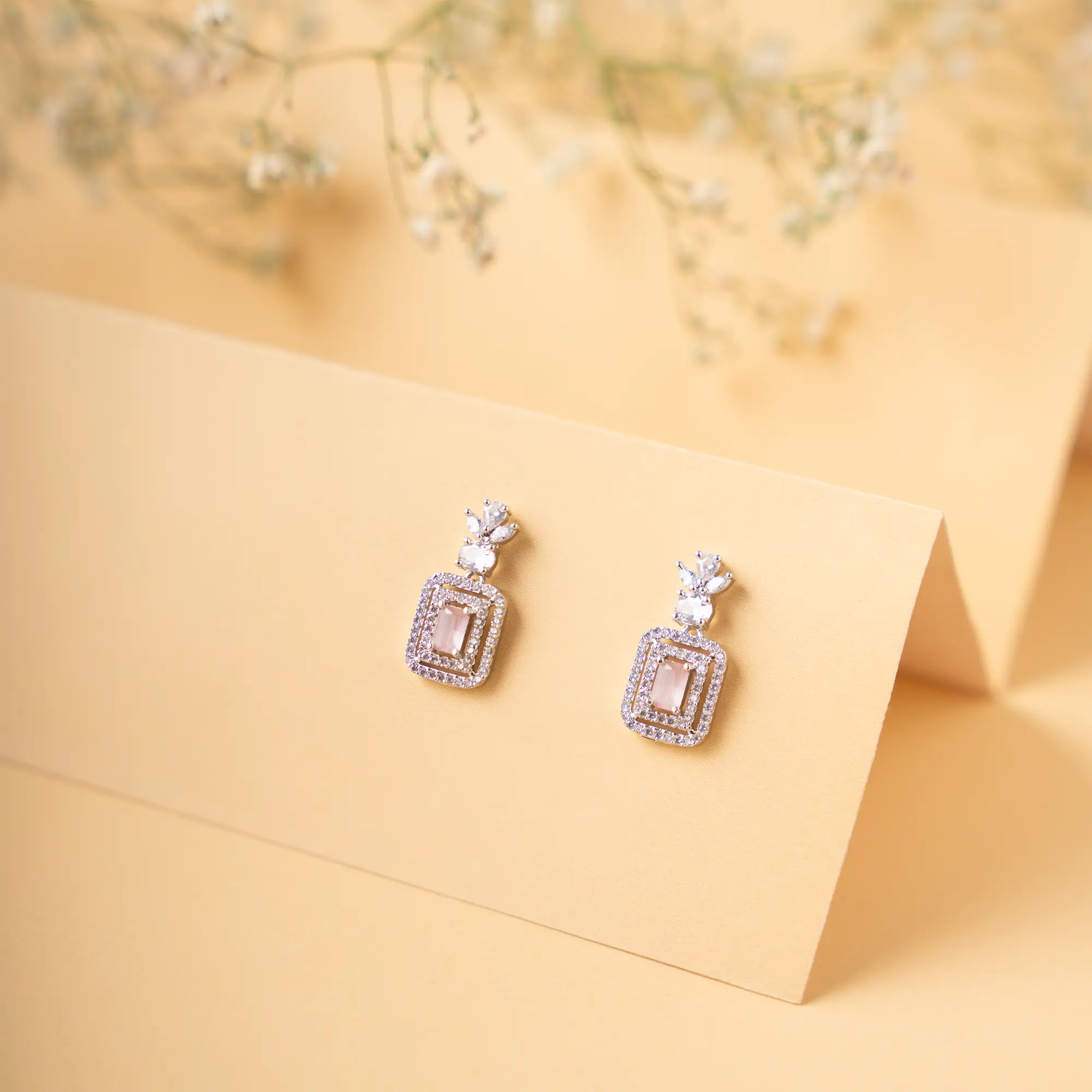 Elevate your elegance with our rhodium-plated earrings adorned with american diamonds. The exquisite earrings combine the brilliance of american diamonds, white and blush pink stones, creating a timeless accessory that effortlessly complements any outfit.