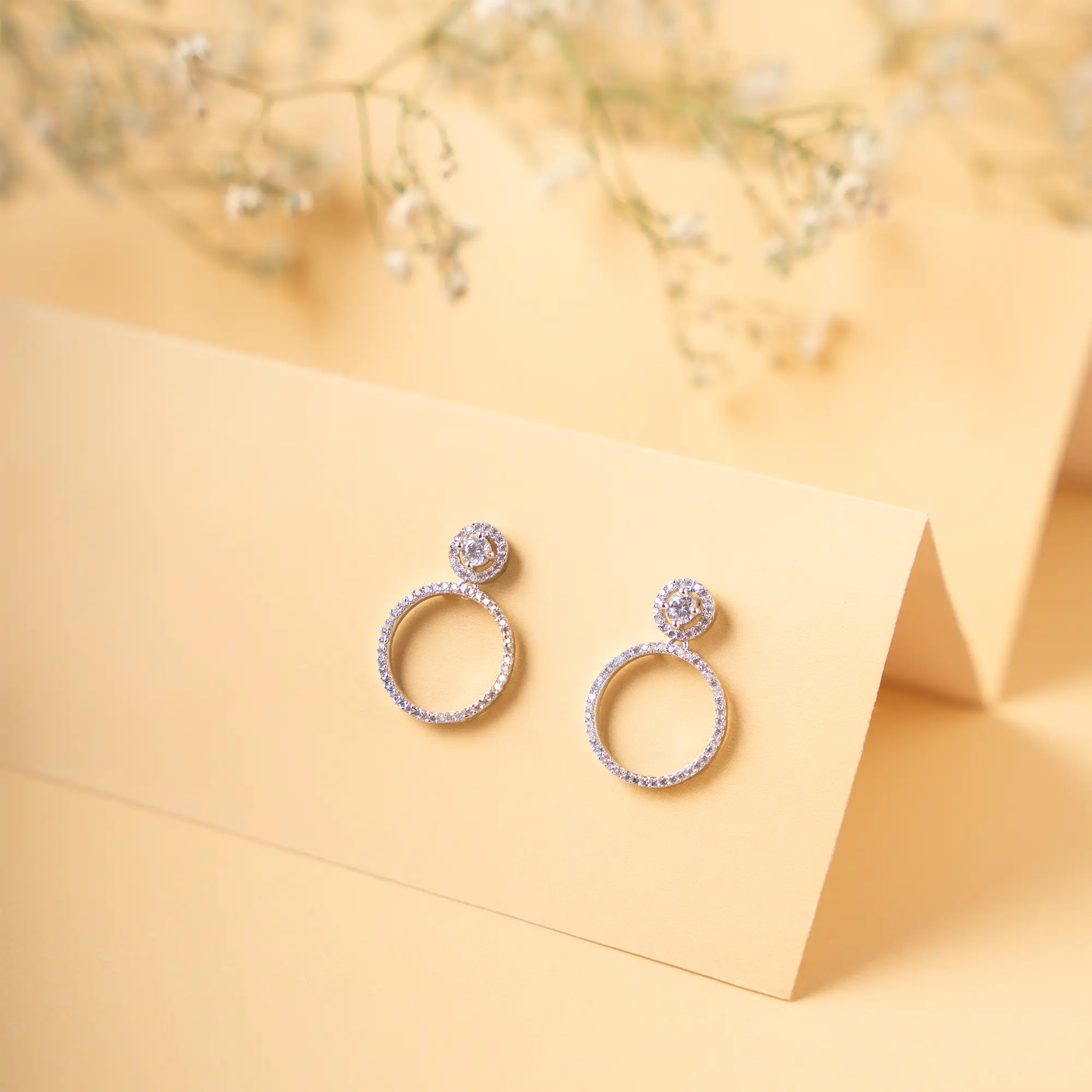 Elevate your elegance with our rhodium plated studs adorned with american diamonds. The exquisite earrings combine the brilliance of american diamonds and white stone, creating a timeless accessory that effortlessly complements any outfit.