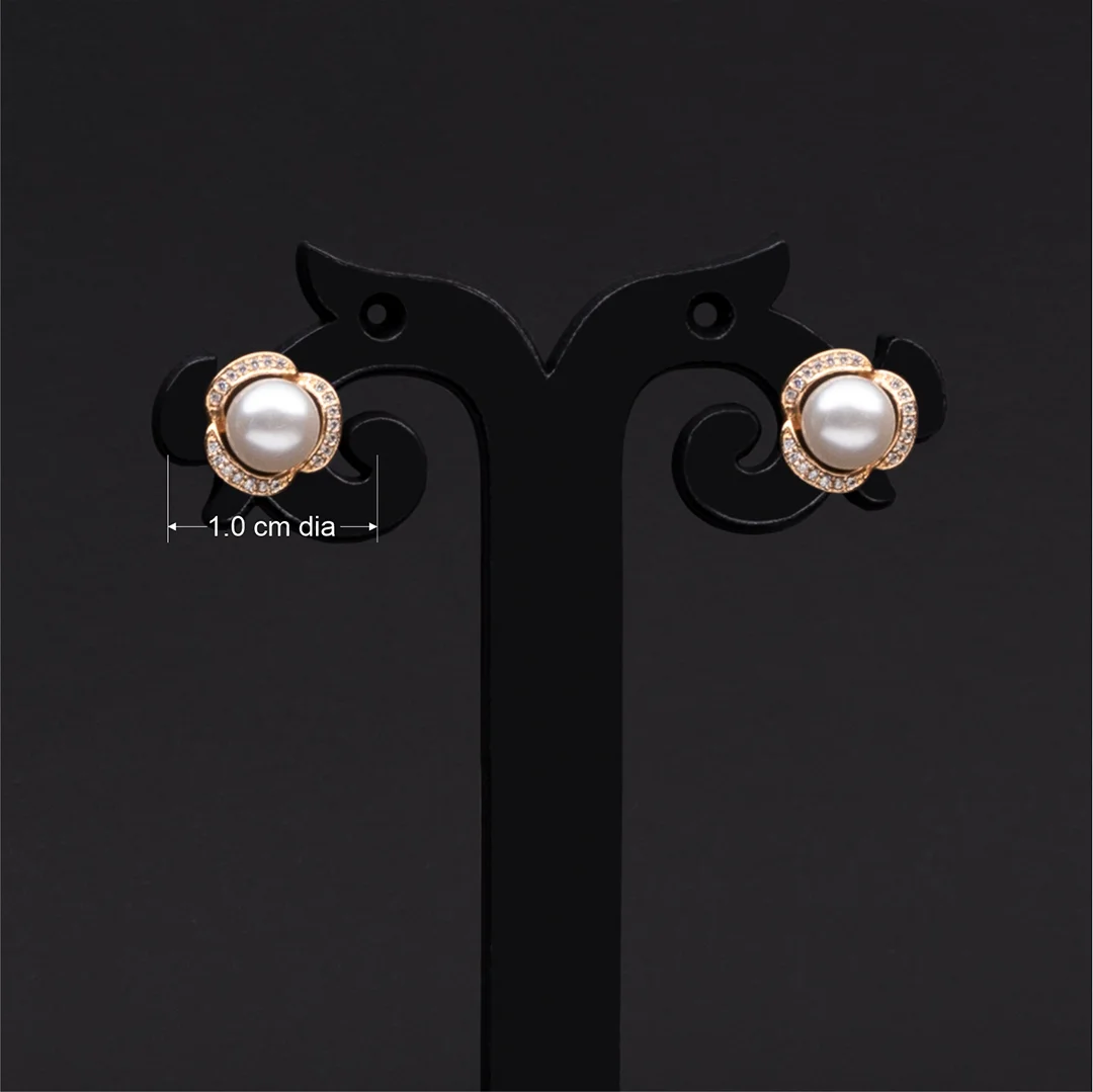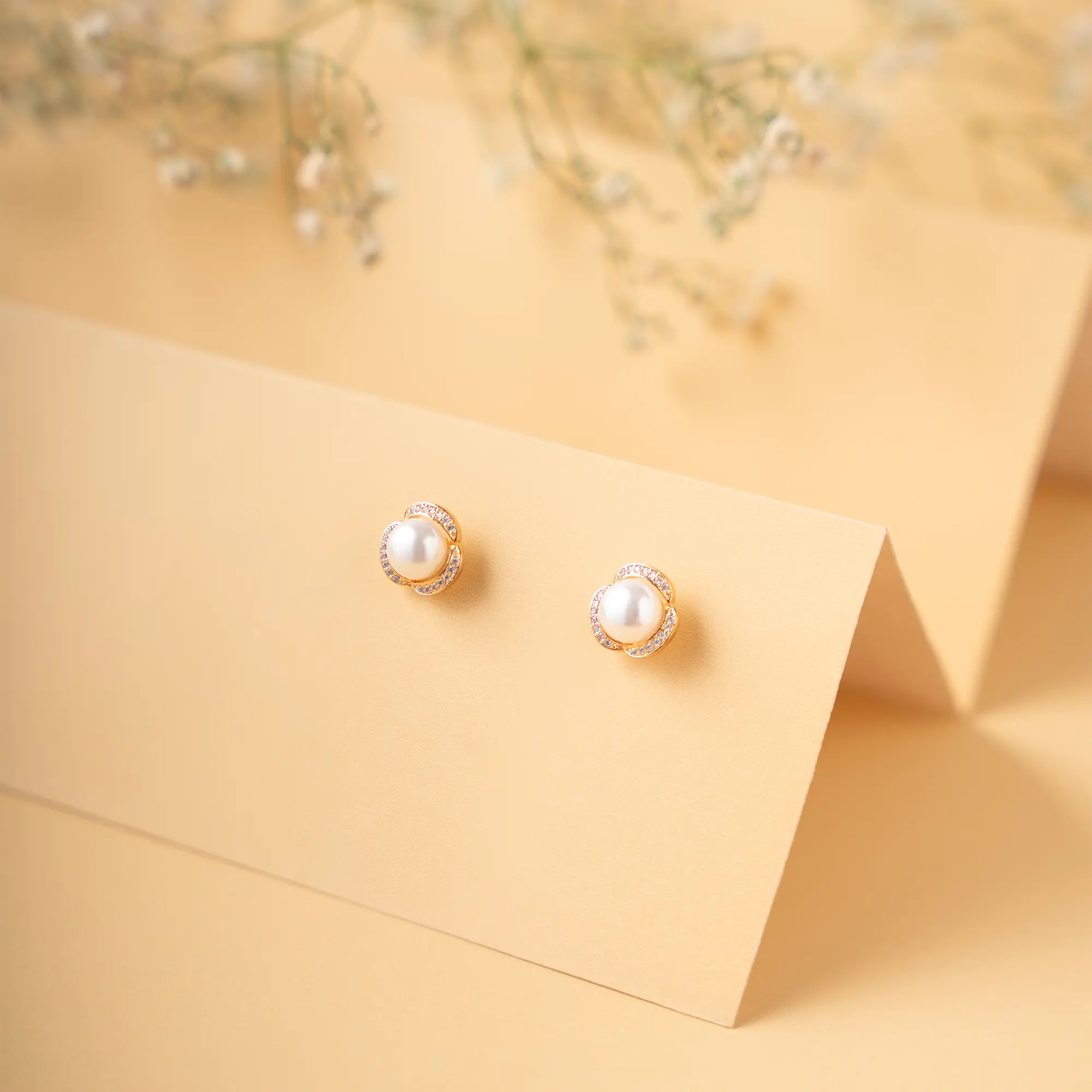 Elevate your elegance with our rose gold-plated earrings adorned with american diamonds. The exquisite earrings combine the brilliance of pearl with american diamonds and white pearl, creating a timeless accessory that effortlessly complements any outfit.